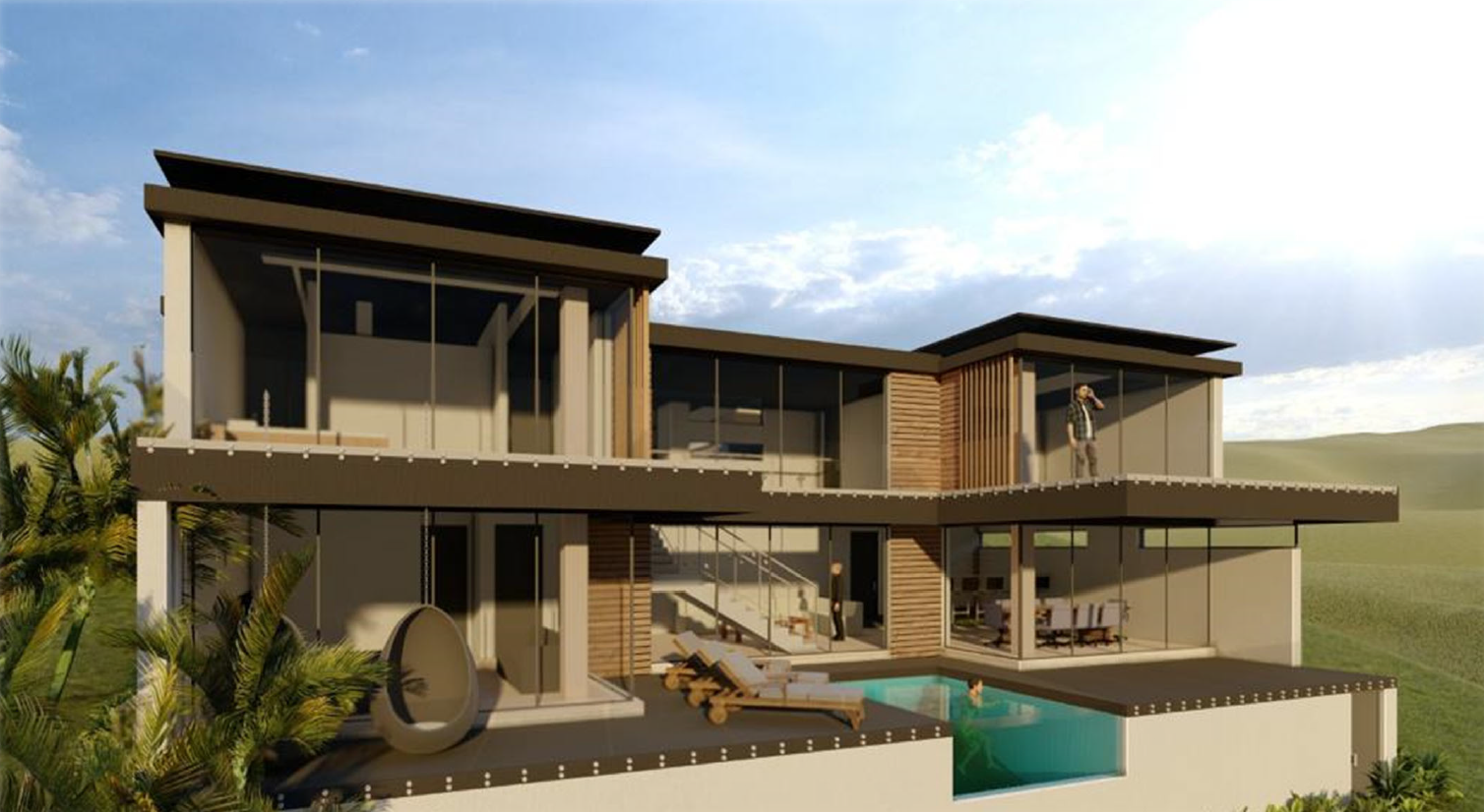 volumn living area to a endless valley view leading down to the living and entertainment areas. The indoor and outdoor living spaces has a fourth bedroom / study